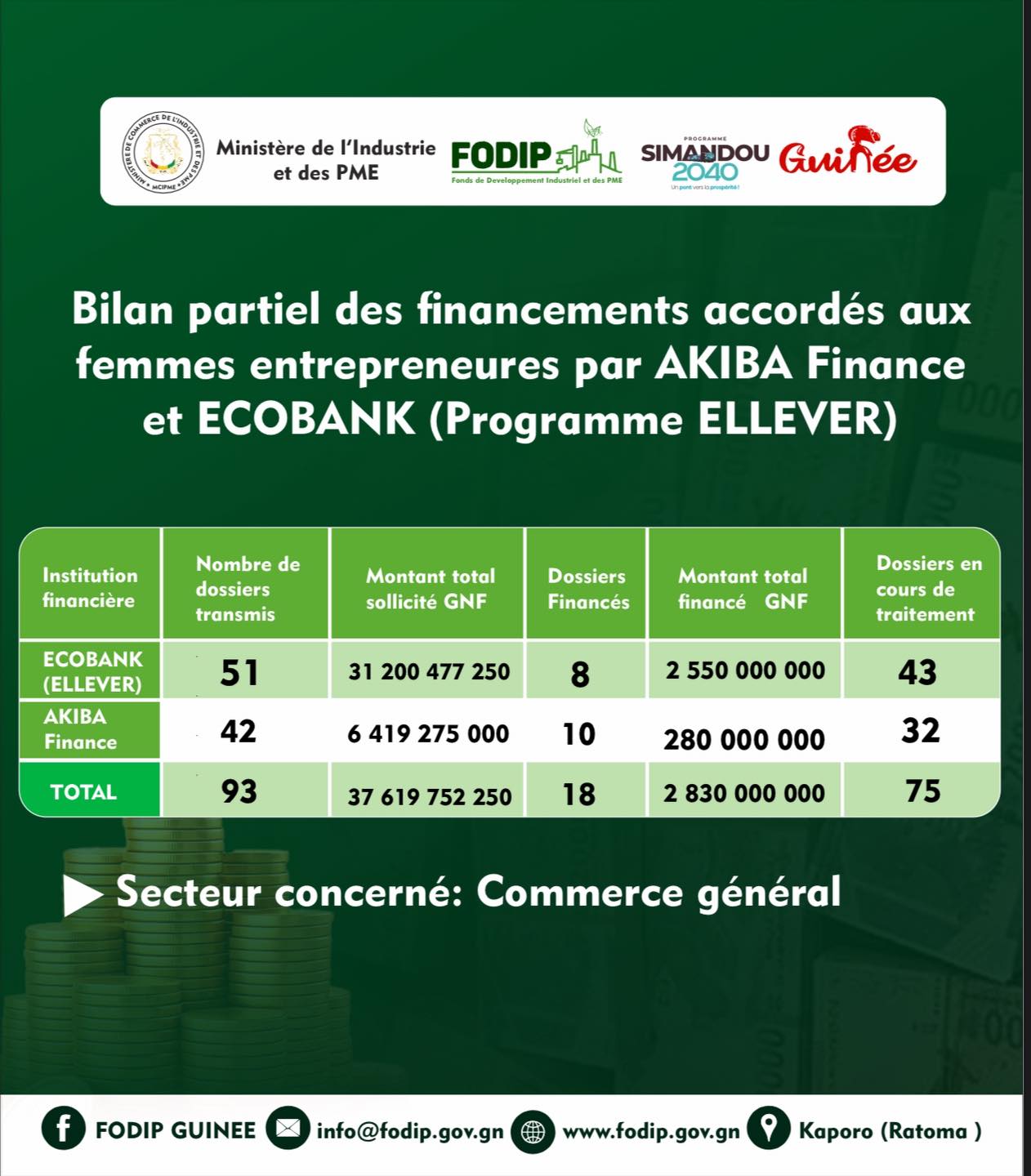 𝗙𝗢𝗗𝗜𝗣: 𝐑𝐞𝐧𝐟𝐨𝐫𝐜𝐞𝐦𝐞𝐧𝐭 𝐝𝐞 𝐜𝐚𝐩𝐚𝐜𝐢𝐭𝐞́𝐬 𝐬𝐮𝐫 𝐥𝐞𝐬 𝐦𝐞́𝐜𝐚𝐧𝐢𝐬𝐦𝐞𝐬 𝐝𝐞 𝐟𝐚𝐜𝐢𝐥𝐢𝐭𝐚𝐭𝐢𝐨𝐧 𝐝’𝐚𝐛𝐬𝐨𝐫𝐩𝐭𝐢𝐨𝐧 de la ligne de financement de 220 000 000 000 GNF aux PME