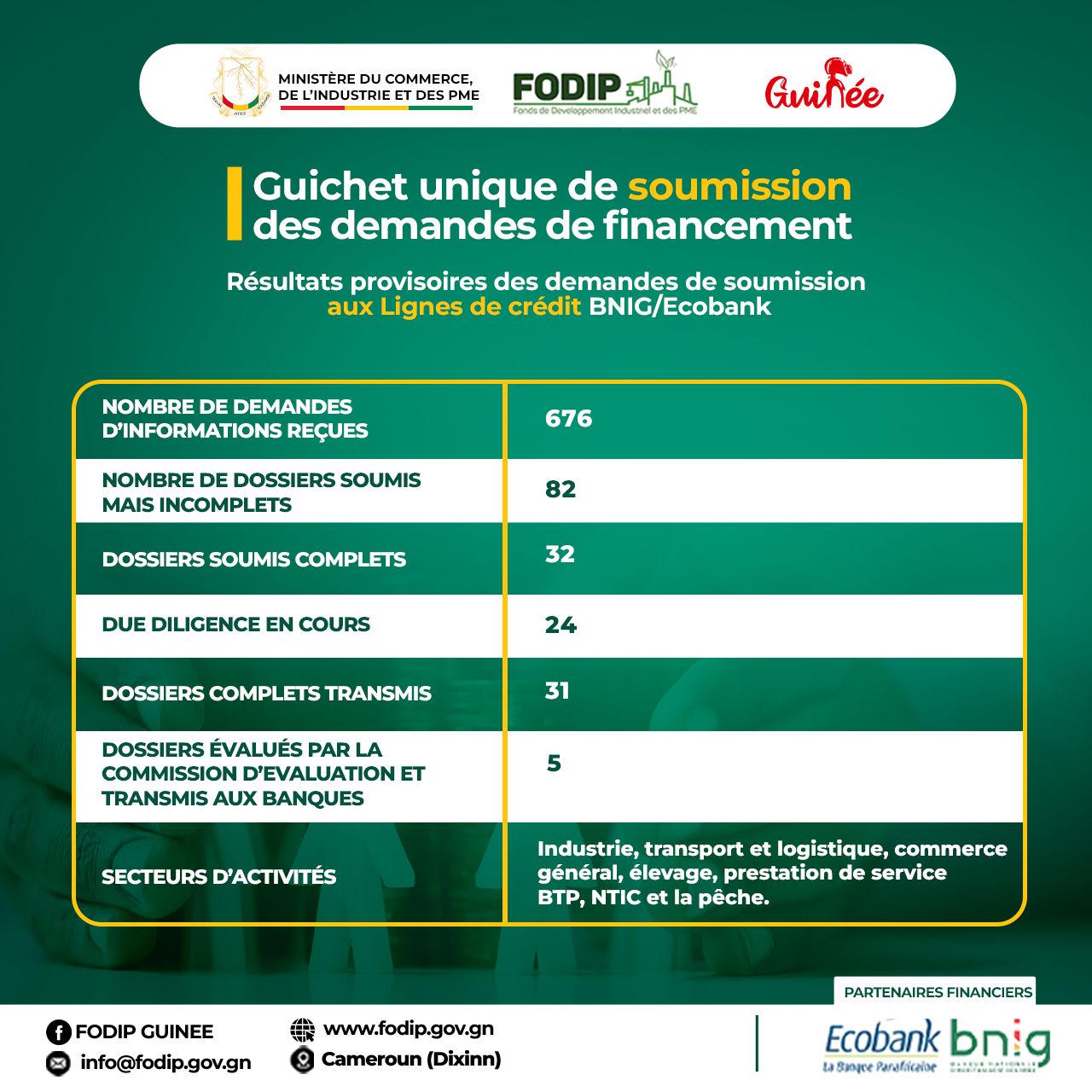 𝗠𝗖𝗜𝗣𝗠𝗘 -𝗙𝗢𝗗𝗜𝗣 🇬🇳 || 𝗥𝗲́𝘀𝘂𝗹𝘁𝗮𝘁𝘀 𝗽𝗿𝗼𝘃𝗶𝘀𝗼𝗶𝗿𝗲𝘀 𝗱𝗲𝘀 𝗱𝗲𝗺𝗮𝗻𝗱𝗲𝘀 𝗱𝗲 𝘀𝗼𝘂𝗺𝗶𝘀𝘀𝗶𝗼𝗻 𝗮𝘂𝘅 𝗟𝗶𝗴𝗻𝗲𝘀 𝗱𝗲 𝗰𝗿𝗲́𝗱𝗶𝘁 𝗕𝗡𝗜𝗚/𝗘𝗰𝗼𝗯𝗮𝗻𝗸