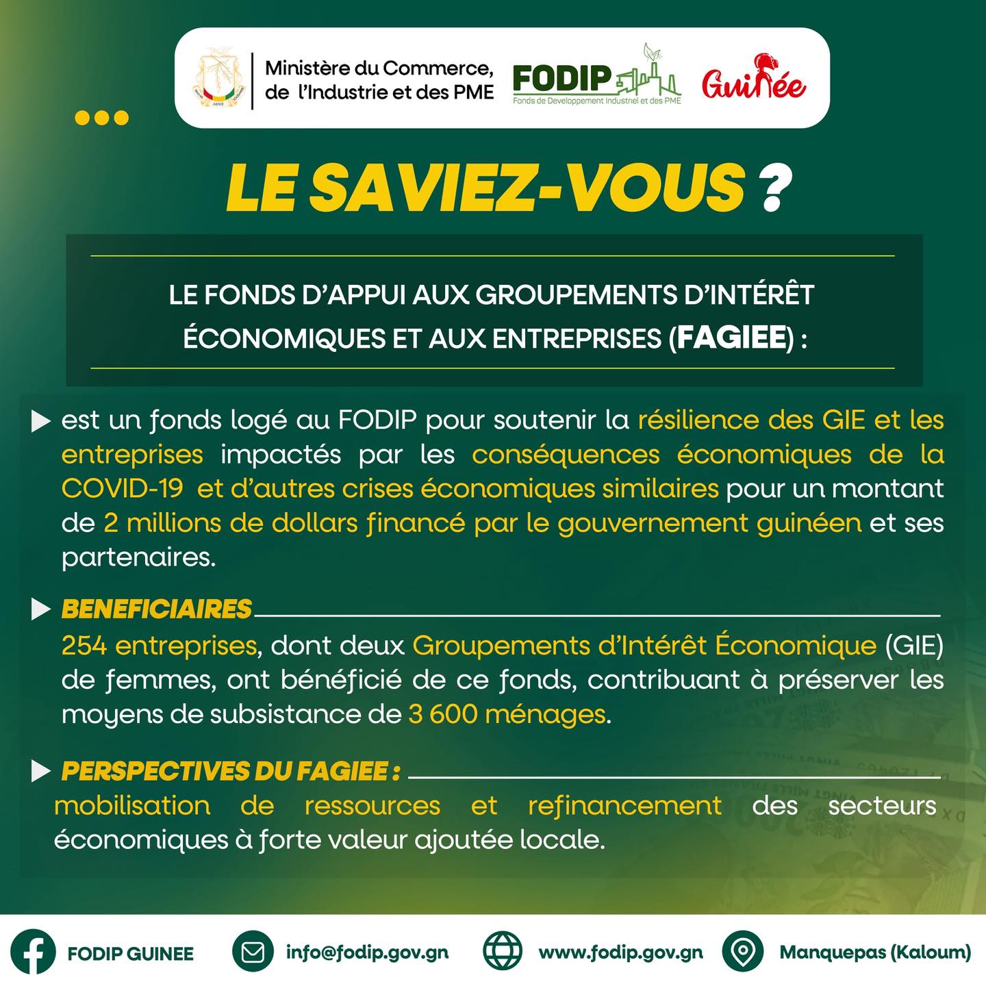 𝐋𝐞 𝐅𝐎𝐃𝐈𝐏 𝐫𝐞𝐧𝐟𝐨𝐫𝐜𝐞 𝐬𝐞𝐬 𝐜𝐚𝐩𝐚𝐜𝐢𝐭𝐞́𝐬 𝐩𝐨𝐮𝐫 𝐦𝐢𝐞𝐮𝐱 𝐚𝐜𝐜𝐨𝐦𝐩𝐚𝐠𝐧𝐞𝐫 𝐥𝐞𝐬 𝐏𝐌𝐄 𝐠𝐮𝐢𝐧𝐞́𝐞𝐧𝐧𝐞𝐬